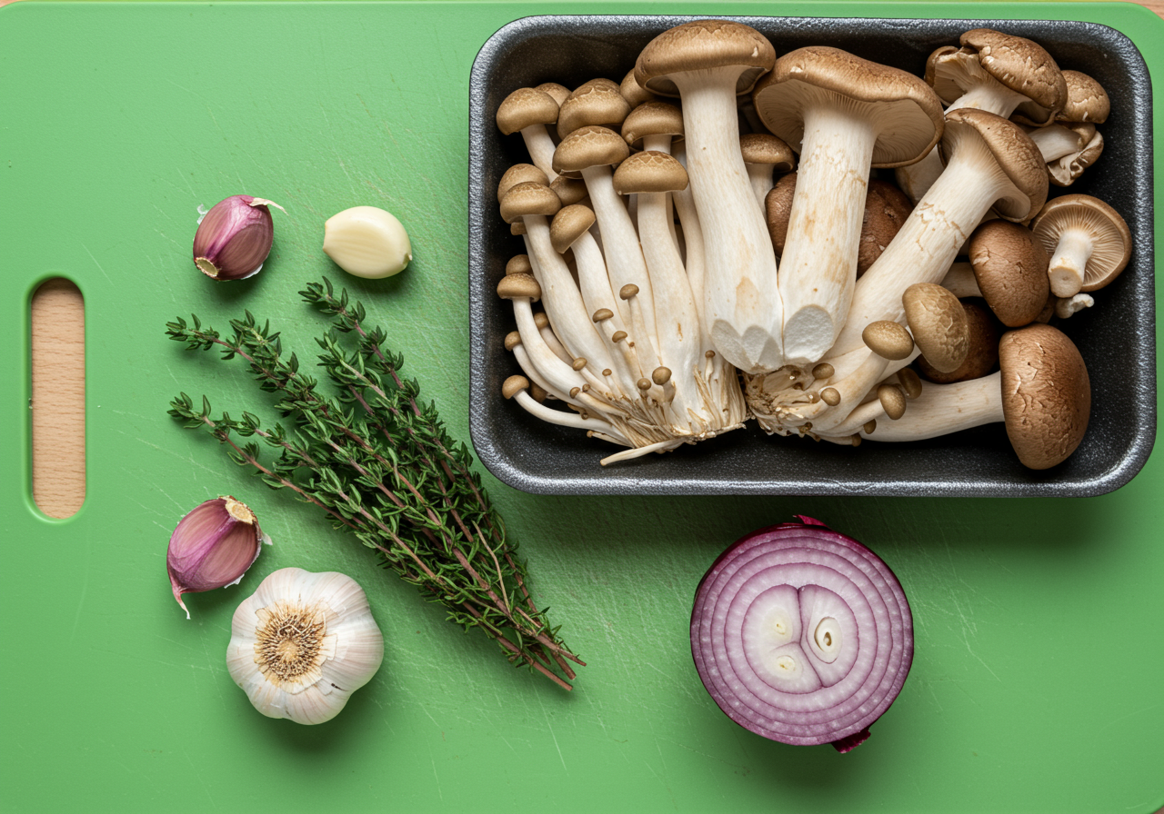 Any variety of available, edible mushrooms may be used or substituted in this recipe. Prep Tip: Never run mushrooms directly under water; they will absorb water like a sponge, and your saute will be soggy. Instead, using a slightly damp paper towel, wipe mushrooms down. Alternatively, use pastry brush and dust the dirt from the mushrooms.
