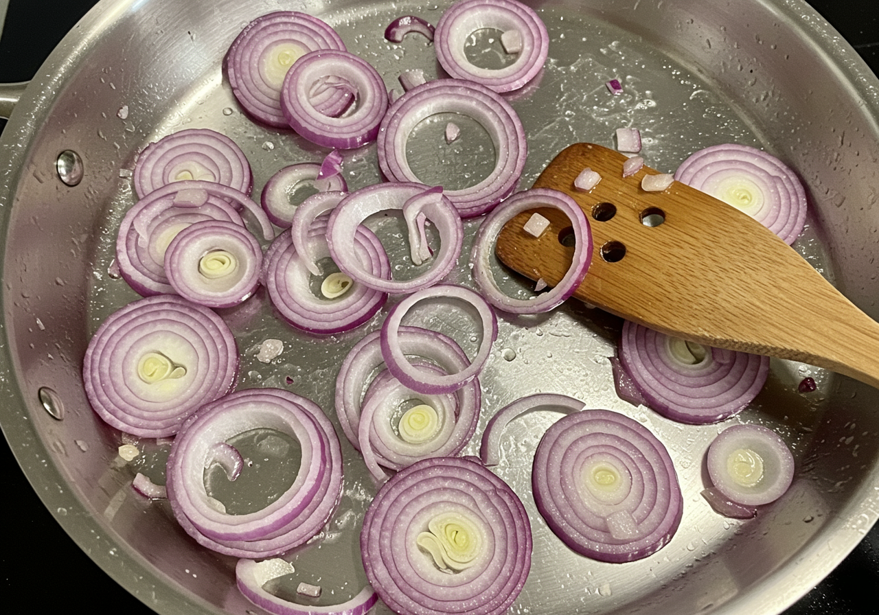 When the onions become translucent, add the mushrooms and toss until all mushrooms are golden brown and caramelized.
