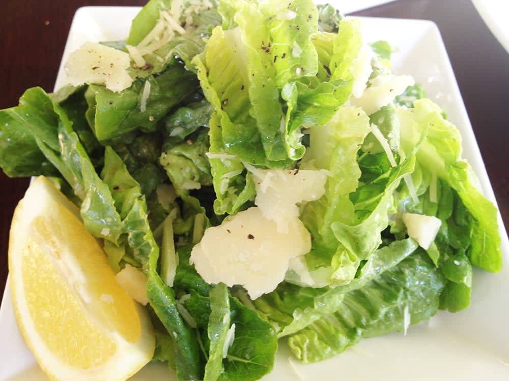 - To plate, spread a spoonful or two of dressing on a plate and top with half a romaine heart, you may also cut each half in half again or in even smaller pieces and place on top of the dressing. Drizzle a bit more dressing over the salad.