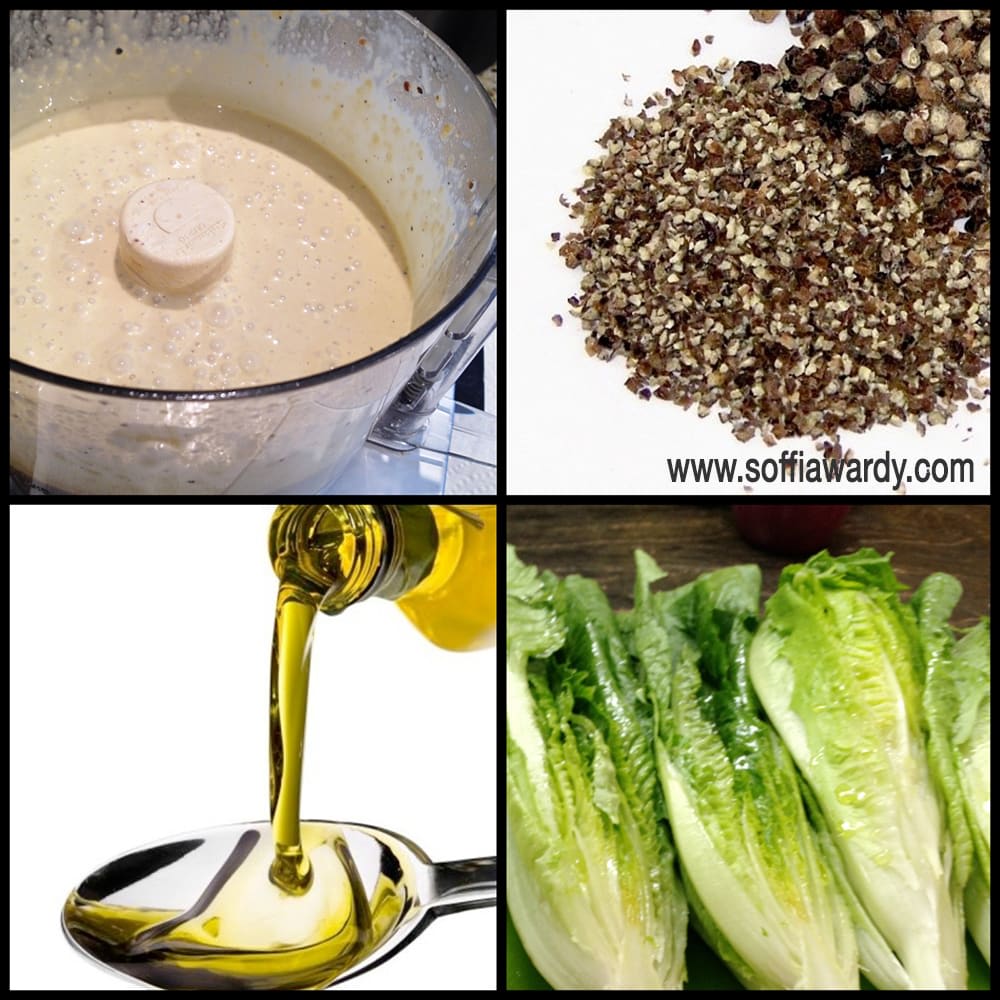 - 3 stalks of hearts of Romaine, cut in half once lengthwise