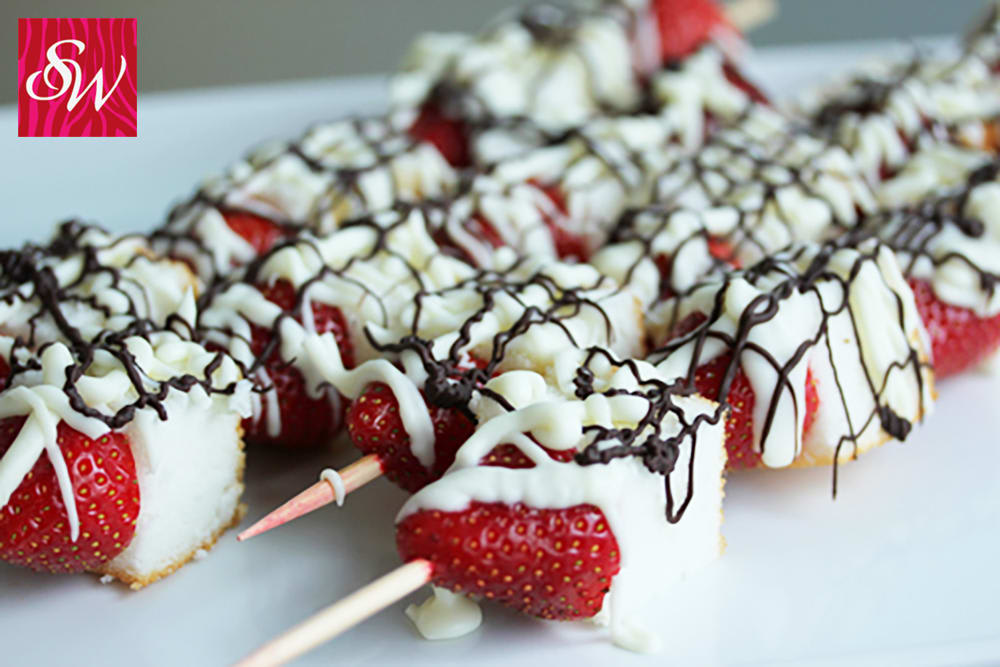 - Skewer strawberries and angel food cake alternating each until all skewers are done.