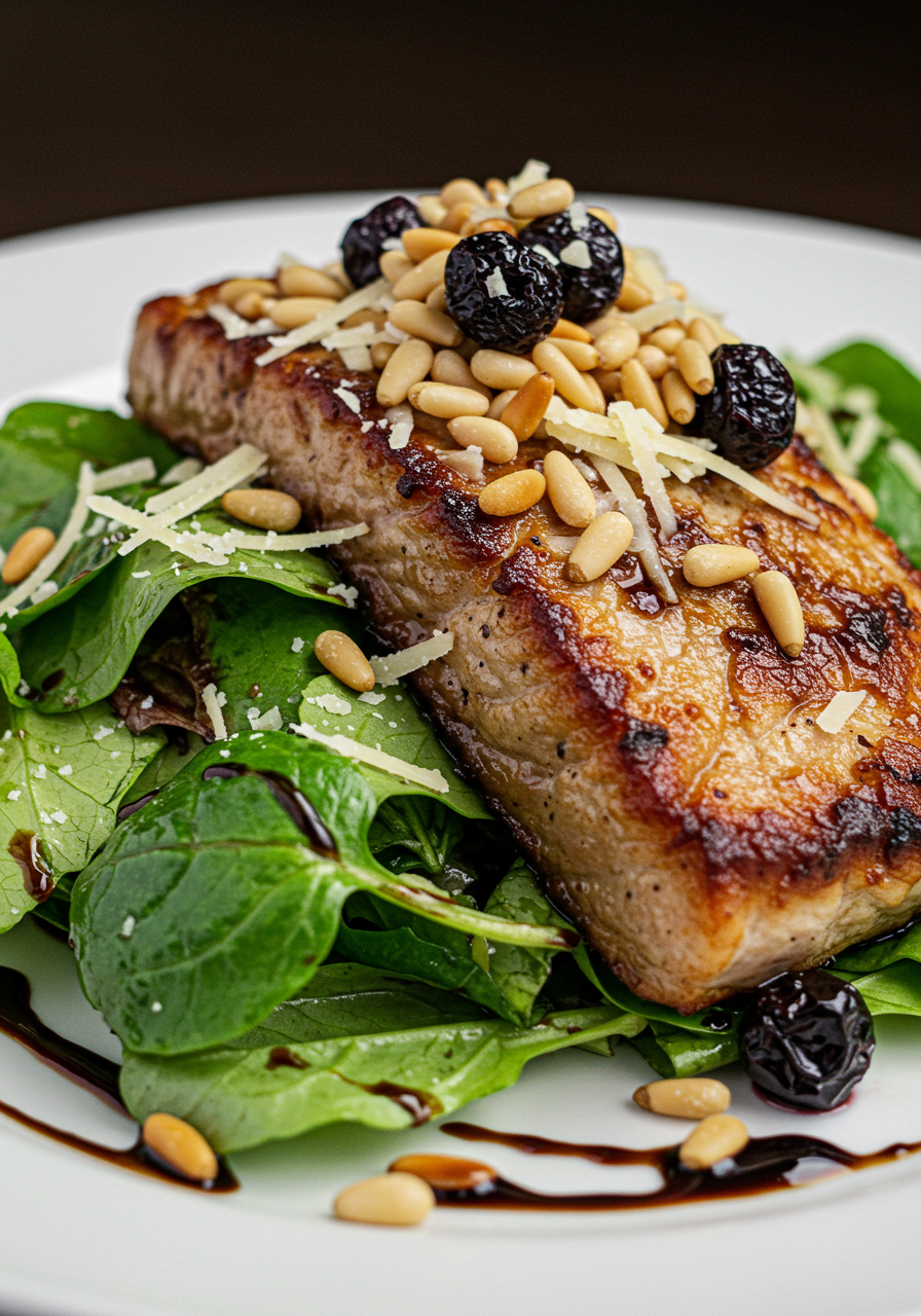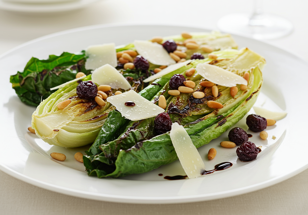 - Top with toasted pine nuts, currants and shaved Parmigiano-Reggiano.