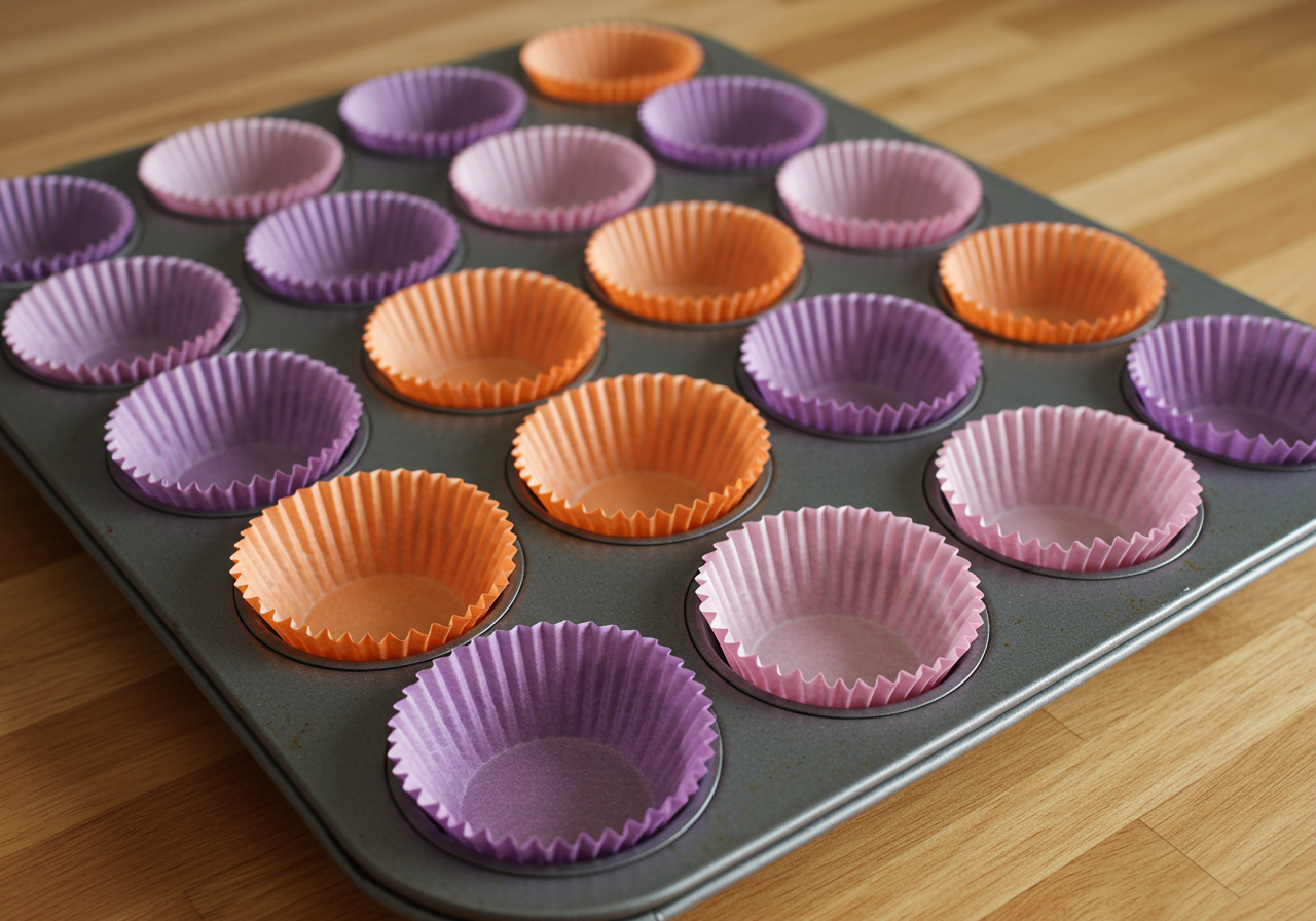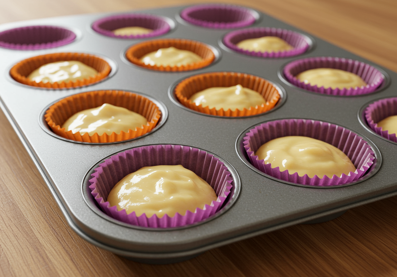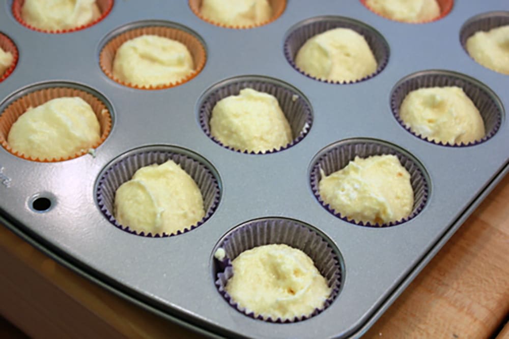 Since the recipe yields 48 mini-muffins it will either require the use of 2-24 mini muffin tin pans or two separate batches using one pan. Fill each mini-muffin section. 3/4 full, with small ice cream scooper and use paper liners if you choose.
