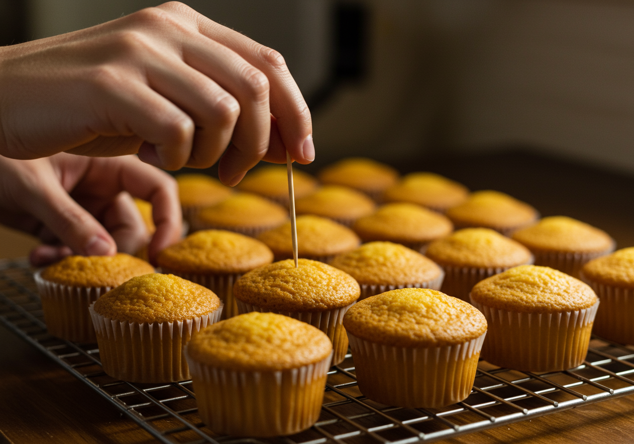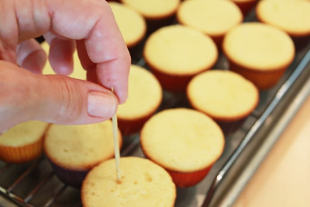 - Using a wooden skewer, poke several holes in the top of each cupcake