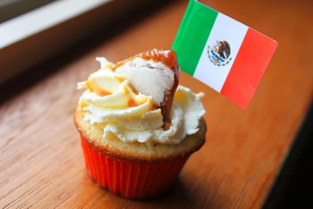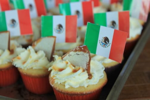 These cupcakes are perfect for a Cinco de Mayo party. We used Mexican Cajeta as a drizzle and quartered Mini Obleas with Cajeta as a sweet topper, alongside Mexican flag toothpicks. Loose the flag and they’re festive anytime.