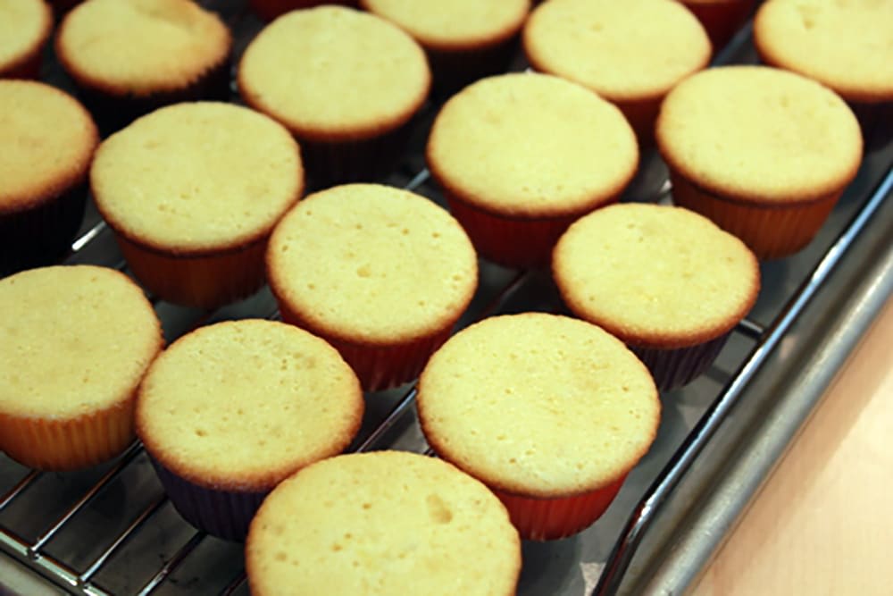 - Transfer cupcakes to wire rack set in a cookie sheet