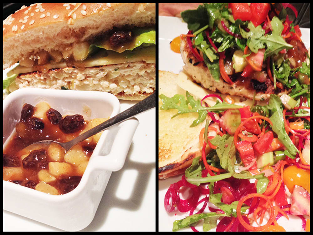 - Serve each burger with a side of Pear Chutney, your favorite toasted bread, avocado slices, cheese, lettuce and for some extra crunch some thinly sliced apples. Finish your plate with either a big veggie salad, (as pictured below) or crisp fries.