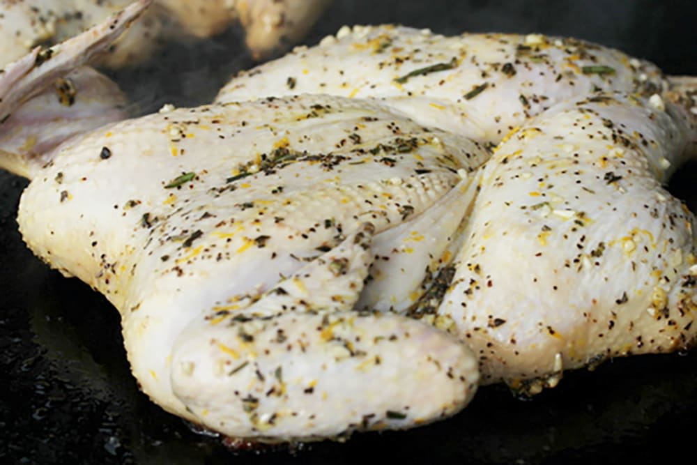 - 1 (3 ½-pound) chicken (we like organic), flattened