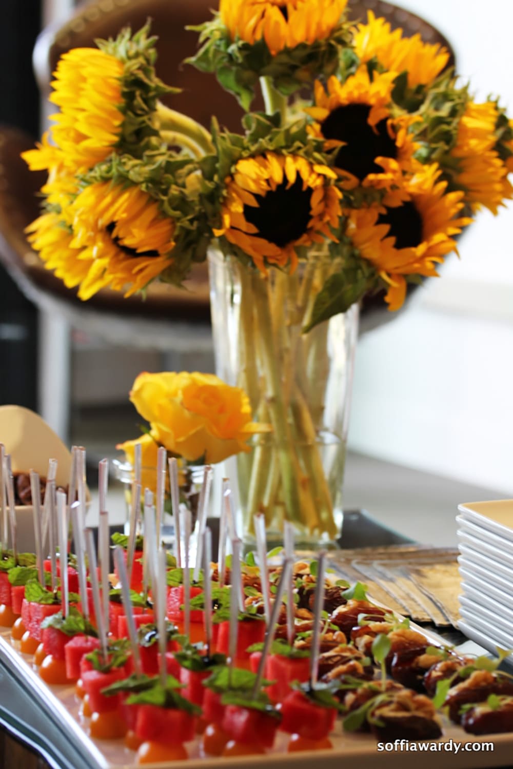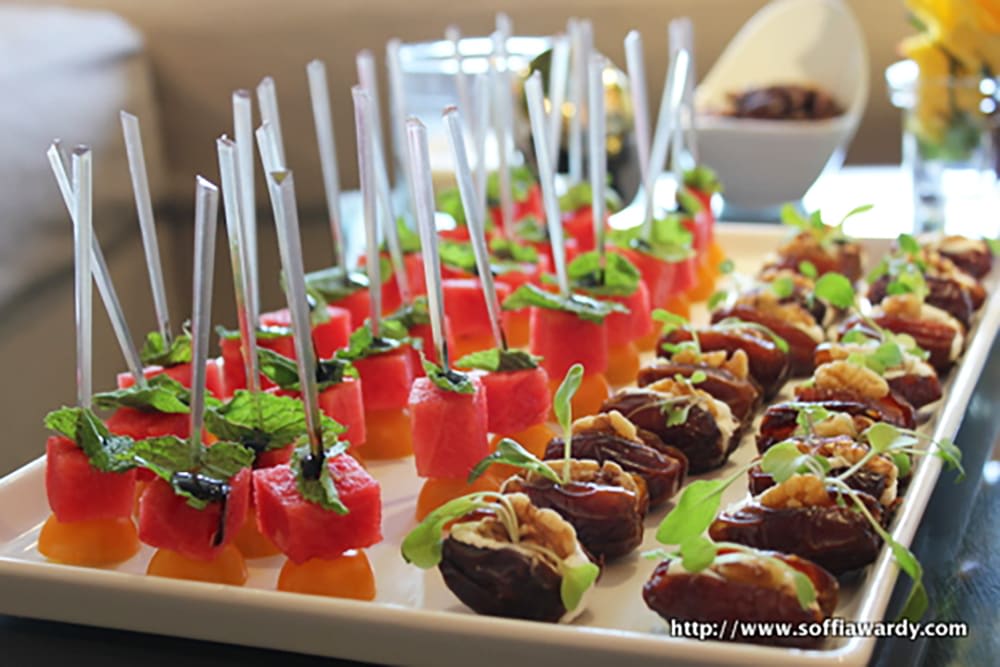 Watermelon Bites are fresh and delicious and are a wonderful way to take advantage of seasonal fruits and vegetables. Preparation is easy and the presentation is beautiful. Pair them with our Medjool Date Bites and enjoy them with cocktails. This recipe was inspired by one of our favorite chefs, Giada De Laurentiis. Mix yellow, orange or red cherry tomatoes for colorful variety!